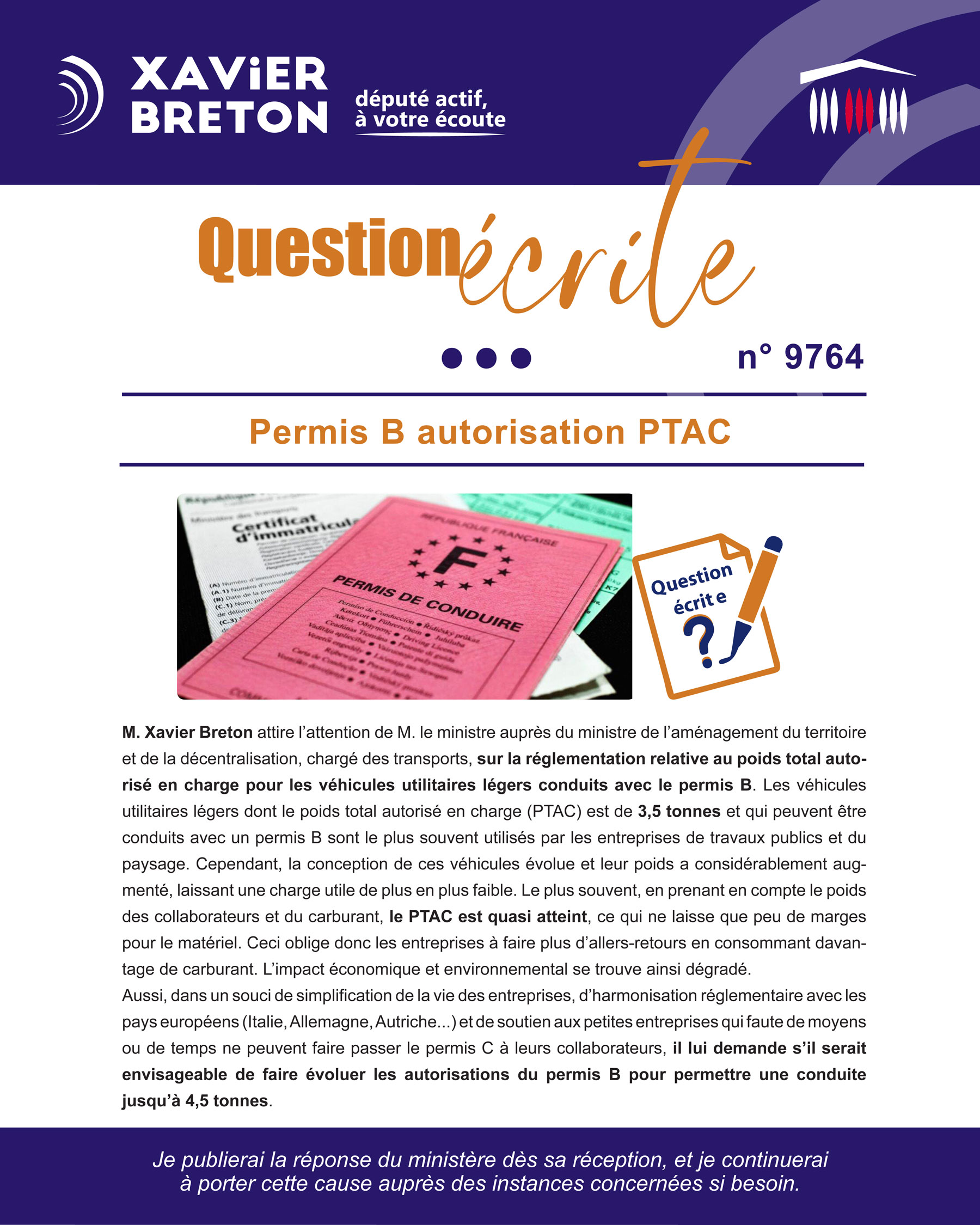 Question écrite N°9764 – Permis B autorisation PTAC